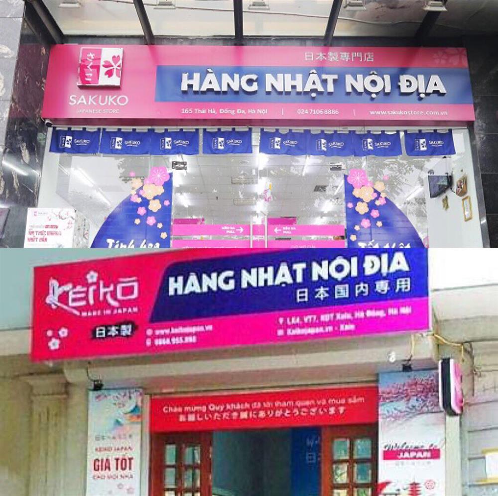 Không chỉ có vậy, biển hiệu của Keiko Japan gần như giống tương tự, "nhái" chuỗi cửa hàng Sakuko - chuyên hàng Nhật nội địa, khiến người tiêu dùng dễ nhầm lẫn về 2 thương hiệu này.