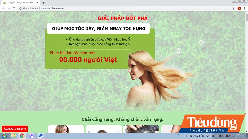 Sản phẩm Dầu gội Thu Hương của Công ty TNHH 1 thành viên Dầu Đông y Thu Hương (địa chỉ tại số 2, ngách 10, ngõ 329 phố Bạch Mai, phường Bạch Mai, Hà Nội) được quảng cáo là theo công thức gia truyền từ Lương y Thu Hương - bác sĩ khoa Y học cổ truyền. Vói chiết xuất 100% từ thiên nhiên, không gây kích ứng, cam kết hoàn tiền 100% nếu không hiệu quả và miễn phí giao hàng trên toàn quốc. Qua giới thiệu của hotline Dầu gội Thu Thương, thì hiện tại doanh nghiệp này có 2 dòng sản phẩm chính gồm trị bạc tóc và trị nấm, kích thích mọc tóc, ngăn ngừa tóc rụng. Một bộ sản phẩm (dù thuộc dòng nào) bao gồm 2 chai trị giá 400.000 đồng sử dụng trong vòng 30 ngày.