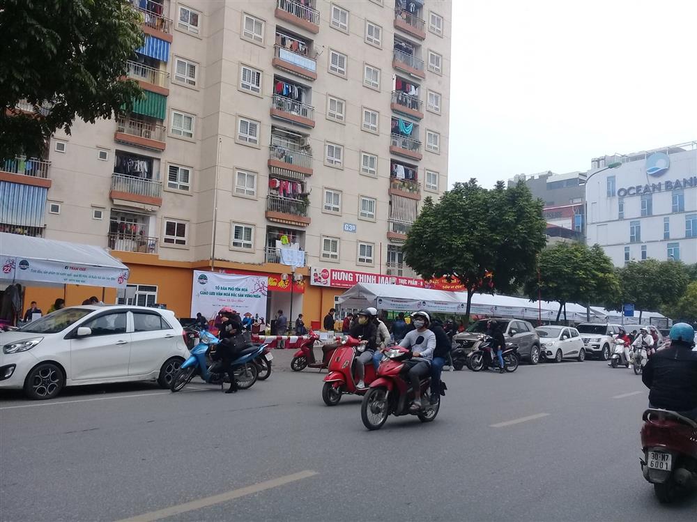 Hội chợ thu hút khá đông người dân hiếu kỳ ghé thăm, việc dừng đỗ ô tô, xe máy thản nhiên trên vỉa hè, tràn xuống dưới lòng đường gây ảnh hưởng đến trật tự an toàn giao thông và mỹ quan đô thị.