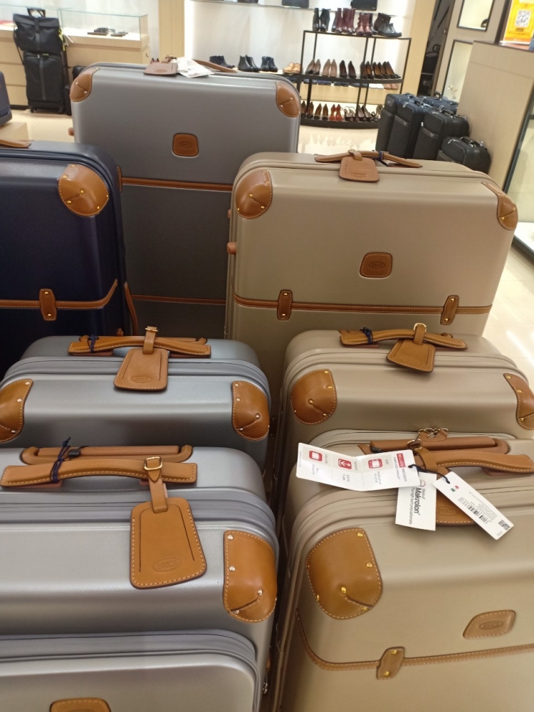 Những chiếc vali được trưng bày bán tại cửa hàng nhưng không rõ ràng tem nhãn, mặc dù được nhân viên khẳng định đây đều là hàng chính hãng của thương hiệu nổi tiếng