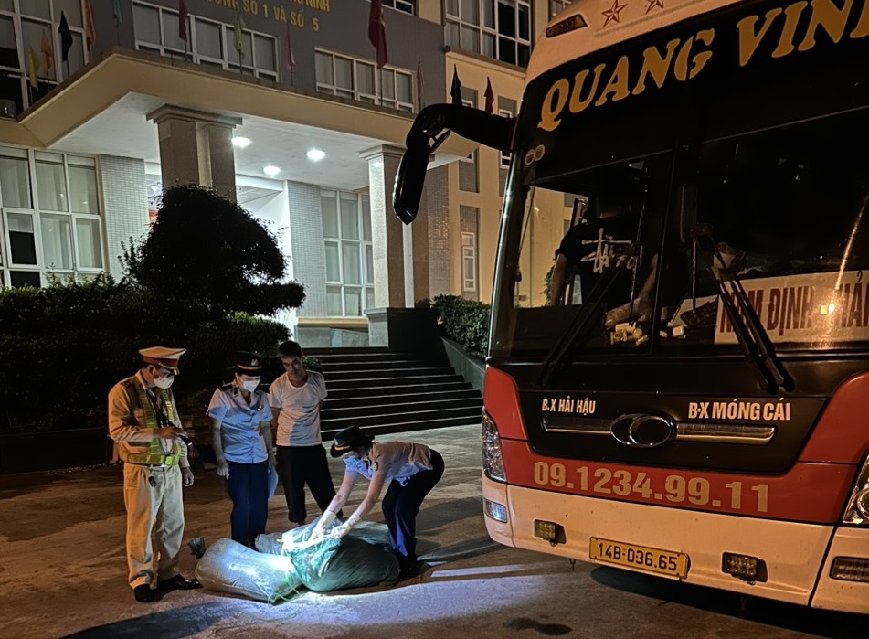 Cụ thế, vừa qua Đội QLTT số 1 – Cục Quản lý thị trường tỉnh Quảng Ninh phối hợp với lực lượng cảnh sát giao thông- Công an tỉnh Quảng Ninh kiểm tra xe ô tô khách BKS 14B-03665 do ông Bùi Văn Vinh sinh năm 1973 điều khiển. Tại thời điểm khám xe, Đội QLTT số 1 đã phát hiện trên khoang chở hàng cất giấu 04 bao dứa bên trong chứa 203 kg mỡ động vật đang bốc mùi ôi thối.