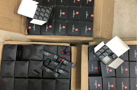 2.160 sản phẩm mỹ phẩm (son môi) do nước ngoài sản xuất, nhãn hiệu Theskinface (Hàn Quốc) đang vận chuyển trái phép vào VN được Hải quan Bắc Phong Sinh phối hợp bắt giữ kịp thời.