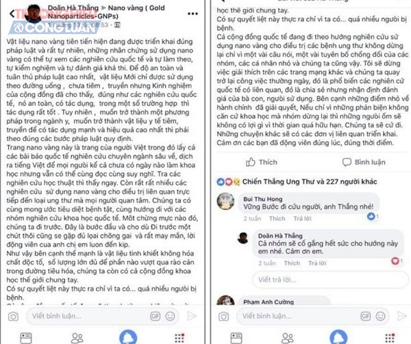 Báo đã đăng kì 1: “Nano vàng 15 triệu/một chai 100cc điều trị ung thư: Quảng cáo, rao bán công khai trên mạng”, nói về việc nhiều bệnh nhân níu kéo hy vọng về sự sống và tin vào vào những lời quảng cáo “có cánh” ở một số group trên mạng xã hội, rất nhiều bệnh nhân ung thư đã tìm đến “thần dược” nano vàng với giá rất cao nhưng cuối cùng tiền mất mà bệnh không thuyên giảm.