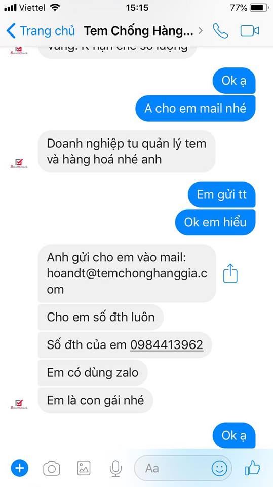 Để chứng minh việc mua tem CHG dễ dàng như mua…rau, chúng tôi đã truy cập vào một số trang mạng chuyên rao bán tem CHG. Giả làm người buôn chuyên nhập hàng mỹ phẩm xách tay muốn mua tem CHG dán vào sản phẩm, nhân viên tên Hoàn tỏ ra khá dè dặt, cảnh giác. “Bên em làm tem CHG phải có giấy tờ đầy đủ, nếu không có giấy tờ thì không ai dám làm đâu. Nếu anh có giấy phép kinh doanh cũng được, bên em sẽ làm cho anh”. Khi chúng tôi nói sẽ mượn giấy phép kinh doanh của đơn vị khác, sau đó nhờ làm thì nhân viên này cũng đồng ý. Sau một hồi làm việc qua lại về mẫu, bảng báo giá nhân viên Hoàn cho biết: số lượng ít nhất một đơn hàng là 10.000 chiếc, nhiều bao nhiêu cũng không giới hạn. Trước khi chốt đơn hàng, mẫu, giá cả nhân viên này dặn dò: “Doanh nghiệp tự quản lý tem và hàng hoá…”