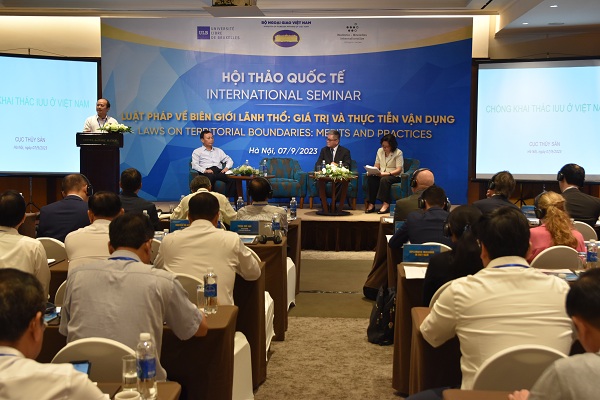 Phát biểu khai mạc Hội thảo, Thứ trưởng Thường trực Bộ Ngoại giao Nguyễn Minh Vũ nhấn mạnh tầm quan trọng và ý nghĩa của vấn đề chủ quyền lãnh thổ, biên giới quốc gia trong quan hệ quốc tế, mối quan hệ giữa chủ quyền, biên giới quốc gia đối với an ninh, hòa bình, ổn định và hợp tác phát triển. Điểm lại các kết quả trong quá trình giải quyết, xử lý các vấn đề biên giới lãnh thổ Việt Nam, Thứ trưởng Thường trực Nguyễn Minh Vũ khẳng định quan điểm nhất quán của Việt Nam về vai trò và tầm quan trọng của luật pháp quốc tế - cơ sở quan trọng trong việc giải quyết các vấn đề biên giới lãnh thổ. Cùng với quá trình giải quyết, Việt Nam không chỉ tuân thủ nghiêm túc luật pháp quốc tế mà còn xây dựng và củng cố hệ thống pháp lý quốc gia, đảm bảo sự tương thích của hệ thống pháp luật quốc gia với pháp luật quốc tế.