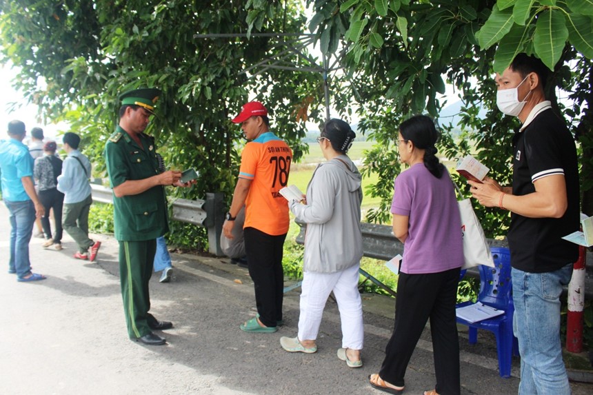 Cán bộ chiến sĩ Đồn Biên phòng CKQT Tịnh Biên kiểm soát chặt chẽ người, hàng hóa, phương tiện qua lại.