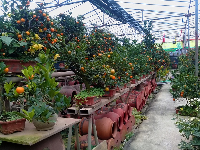 Điều đặc biệt hơn, những chậu cây quất bonsai ở nơi đây sẽ có những thế và dáng cây khác nhau, điều đó hoàn toàn phụ thuộc vào từng chiếc chậu khác nhau, tạo điểm nhấn, không bị nhàm chán, giống từng mẫu mã như ở những nơi trồng quất khác.