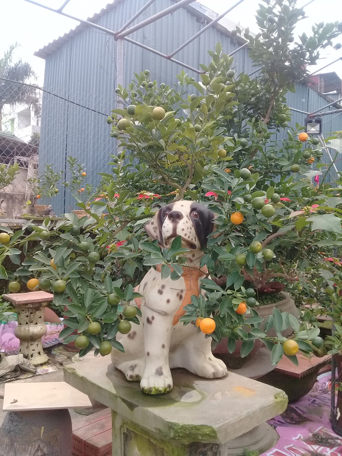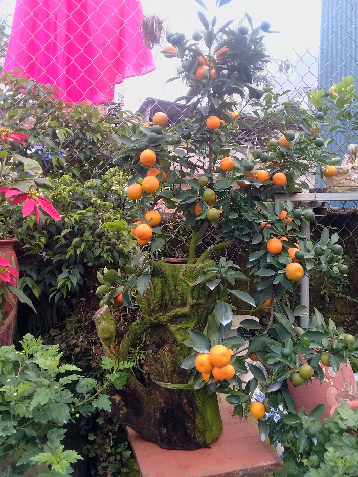 Trong hình là quất bonsai được trống trên lưng Phật Di Lặc.