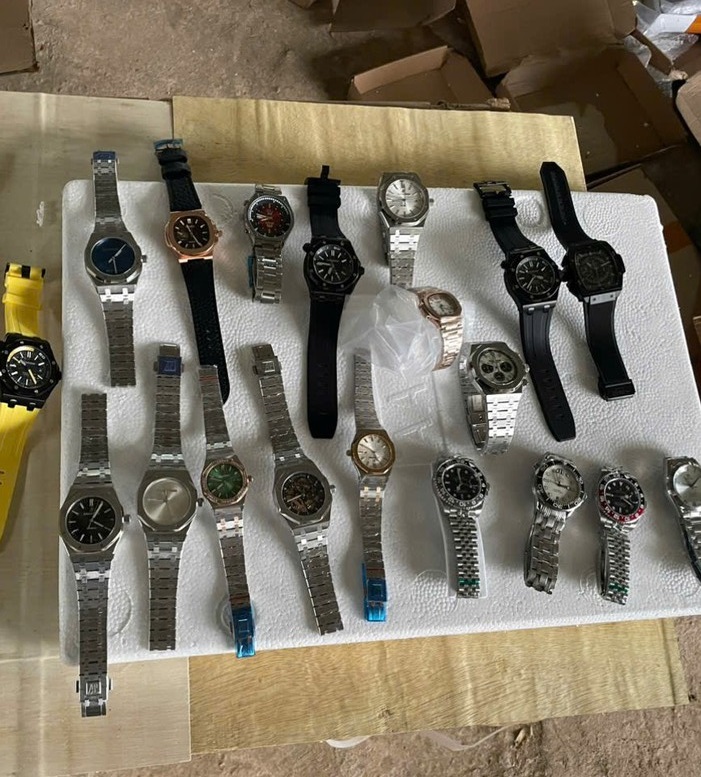 Đáng chú ý, lực lượng chức năng đã phát hiện 8 mục hàng hóa có dấu hiệu nghi vấn xâm phạm quyền sở hữu trí tuệ, với tổng số 874 chiếc đồng hồ đeo tay mang các nhãn hiệu cao cấp, nổi tiếng toàn cầu như Patek Philippe, Rolex, Hublot và Cartier. Toàn bộ số hàng hóa đều là hàng mới 100%, song tại thời điểm kiểm tra, doanh nghiệp không xuất trình được bất kỳ tài liệu, giấy tờ nào chứng minh quyền sử dụng hợp pháp các nhãn hiệu nói trên.