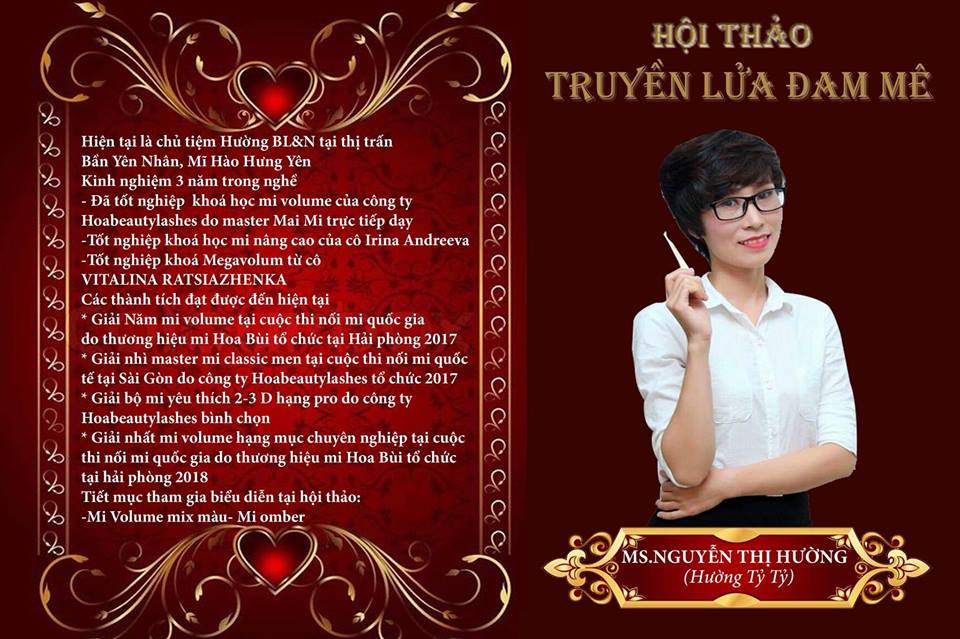 Cô là trưởng nhóm Hưng Yên ban nối mi của Liên hiệp Spa thẩm mỹ Việt Nam