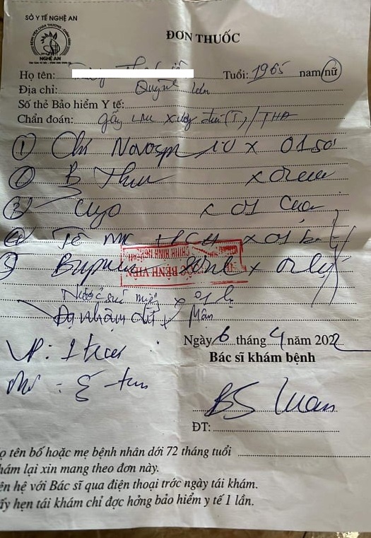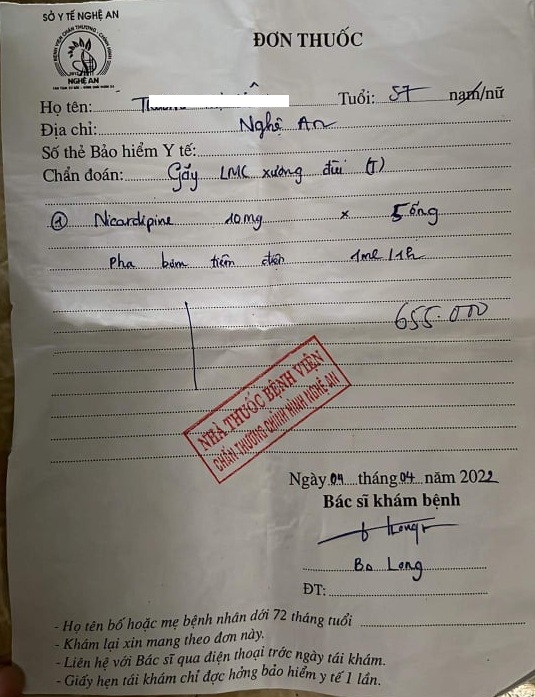 Sau đó PV liên hệ với Trưởng khoa Dược – BV Chấn thương Chỉnh hình Nghệ An, trao đổi với PV vị này cho biết đã kiểm tra và cho rằng đây không phải là đơn thuốc mua tại nhà thuốc bệnh viện: “Chị kiểm tra rồi, những cái này không mua tại nhà thuốc của chị đâu. Nếu mà mua thì phải có dấu, tổng tiền, đóng dấu nhà thuốc hoặc có hóa đơn bán lẻ”, Trưởng khoa Dược – BV Chấn thương Chỉnh hình Nghệ An chia sẻ.
