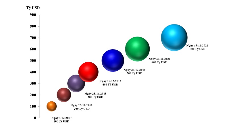 Một cột mốc mới 700 tỷ USD sẽ được ghi nhận vào ngày 15/12/2022 (tính đến ngày 14/12/2022, trị giá xuất nhập khẩu là 698,5 tỷ USD).