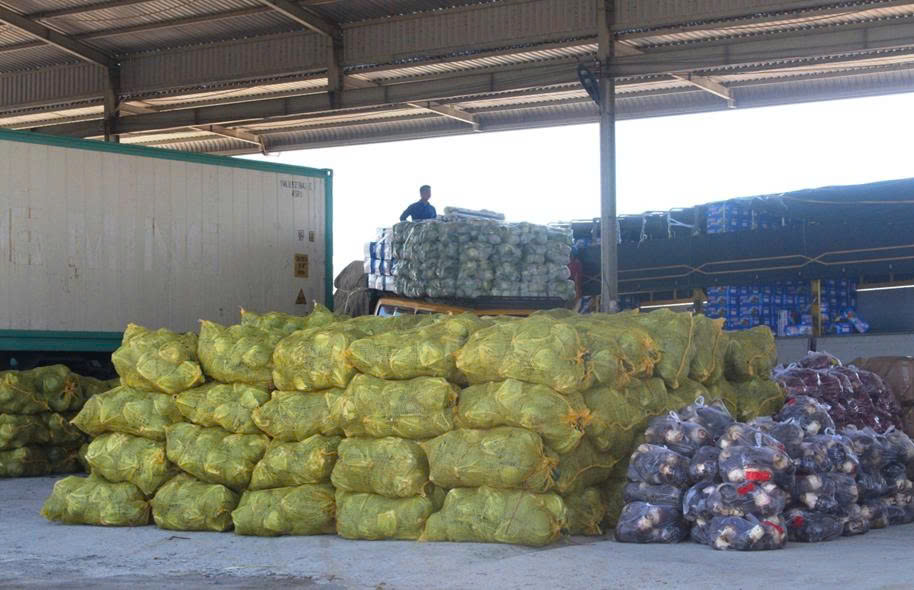 Bãi tập kết hàng hóa nông sản chờ lực lượng chức năng kiểm tra trước khi xuất khẩu.