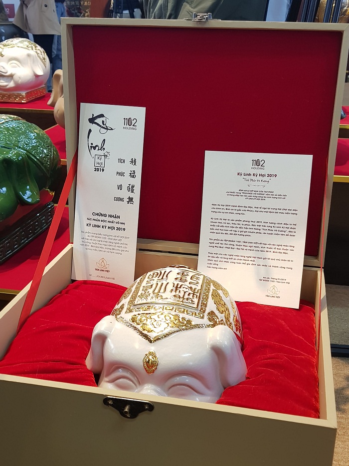 Tại tòa nhà trưng bày giới thiệu của Gia tộc Việt cùng Tập đoàn 1102 - số138, xóm 5, thôn Bát Tràng, xã Bát Tràng, huyện Gia Lâm, Hà Nội nhiều nghệ nhân cùng những người yêu thích Gốm đã có buổi mãn nhãn với kiệt tác Kỳ Linh Kỷ Hợi 2019 – Độc nhất vô nhị được tung ra trong năm 2019.
