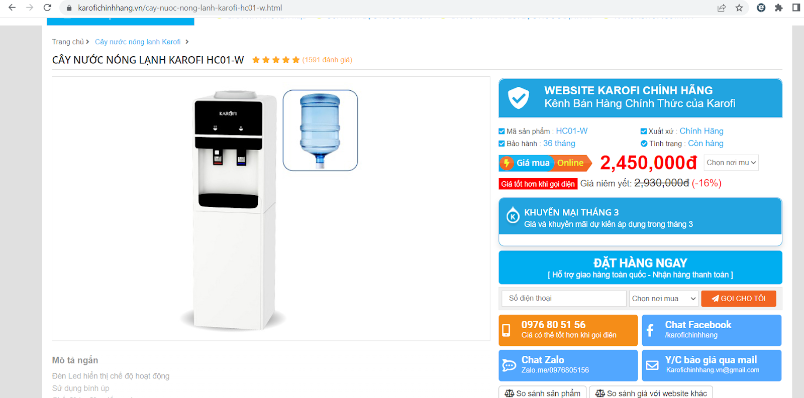 Cây nước nóng lạnh HC01-W, xuất xứ Việt Nam