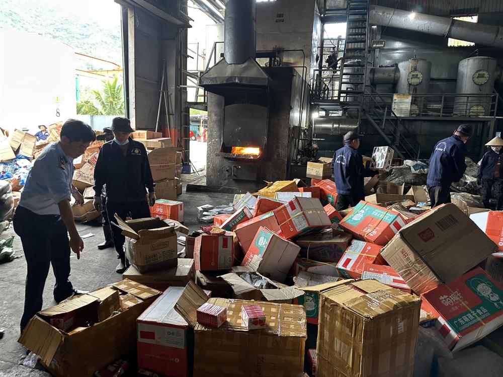 Tiếp đó ngày 20/7/2023, tại Nhà máy tái chế và xử lý chất thải nguy hại (xã Cát Nhơn, huyện Phù Cát, tỉnh Bình Định)- Công ty TNHH Thương mại và Môi trường Hậu Sanh (đơn vị được thuê thực hiện việc tiêu hủy) đã tiến hành tiêu hủy tất cả số hàng hóa trên