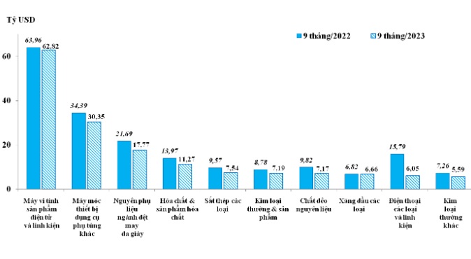 Những nhóm hàng nhập khẩu lớn nhất của Việt Nam trong 10 tháng năm 2022 và 10 tháng năm 2023