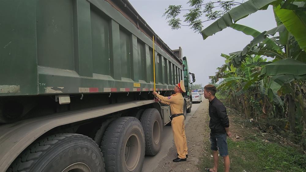 Đội CSGT đường bộ thuộc phòng Cảnh sát giao thông Công an Tỉnh kiểm tra đo chiều cao thanh thùng xe.