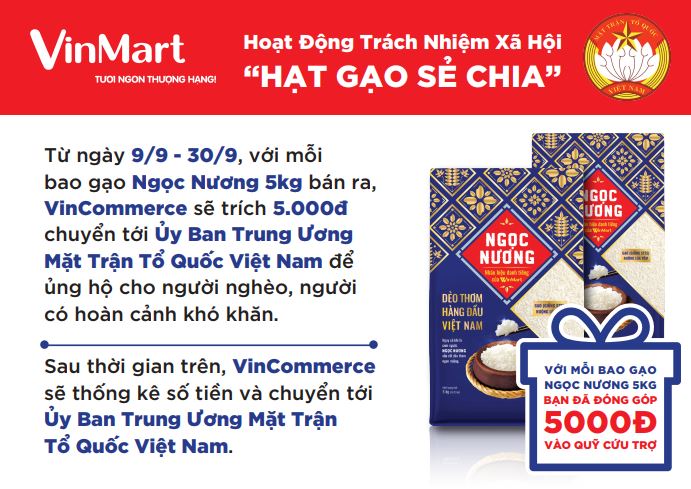 Với mong muốn cùng đồng hành phát triển ngành sản xuất của Việt Nam, hơn 90% các mặt hàng tại VinMart có xuất xứ nội địa. Trong đó, gạo, trứng và trái cây là những loại thực phẩm cơ bản và gần gũi trong bữa cơm của các gia đình Việt. Từ ngày 9/9/2021, VinMart/VinMart+ giới thiệu sản phẩm gạo Ngọc Nương, trứng gà O’lala. Tiếp theo, ngày 16/9/2021, 7 loại trái cây Việt thương hiệu Đế Vương sẽ được giới thiệu tại hệ thống này. Gạo Ngọc Nương là giống gạo ST25 canh tác trên ruộng lúa tôm, giống gạo đã được thế giới công nhận về độ ngon, thành phần dinh dưỡng dồi dào. Trứng gà sạch O'lala được xử lý theo công nghệ diệt khuẩn UV/Ozone, 100% đạt chuẩn trứng gà tươi. Bảy loại trái cây Đế Vương đều là các đặc sản trứ danh của Việt Nam.
