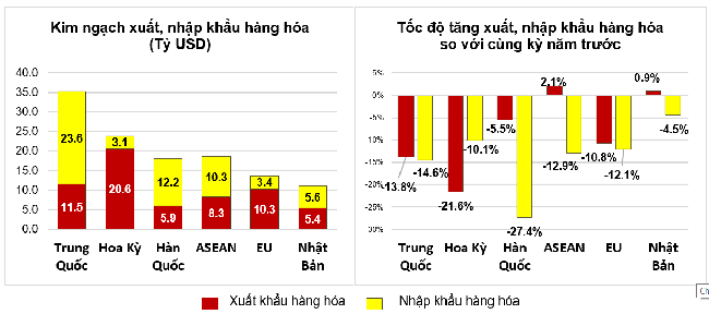 Về thị trường xuất nhập khẩu hàng hóa quý 1 năm 2023, Hoa Kỳ là thị trường xuất khẩu lớn nhất của Việt Nam với kim ngạch ước đạt 20,6 tỷ USD. Tiếp sau là Trung Quốc với kim ngạch ước đạt 23,6 tỷ USD.