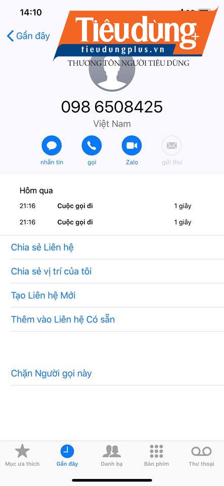 Số điện thoại mời gọi chị L.H tham gia trải nghiệm nhưng sau đó gọi lại không liên lạc được. (Ảnh: Bạn đọc cung cấp)