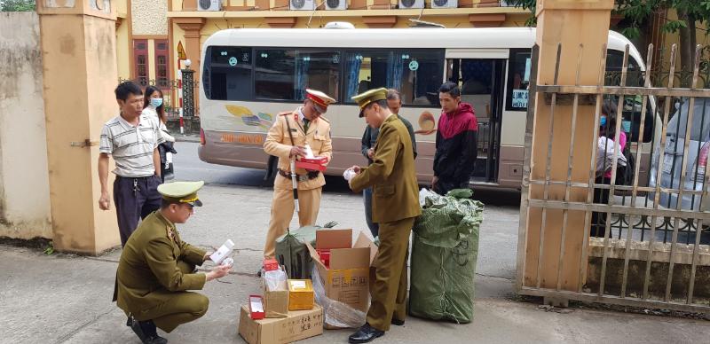 Đoàn kiểm tra tiến hành phân loại, kiểm đểm thực tế hàng hóa vận chuyển trong xe ô tô biển kiểm soát 20B-008.60, phát hiện 07 loại hàng hóa với 533 đơn vị sản phẩm gồm: Camera hành trình xe ô tô; Đài lắp ô tô 4x60w; Đồng hồ thông minh Hw12; Mắt camera lùi LIKGUS1080P; Quần nỉ lót lông nữ người lớn; Quần tất nữ người lớn;... đều có nguồn gốc sản xuất ngoài Việt Nam.