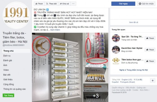 Là cơ sở làm đẹp “chui” chưa được các cơ quan chức năng cấp phép, 1991 Beauty Center (Cơ sở 1: Km13, Ngã 3 Ngọc Hồi, Thanh Trì, Hà Nội; Cơ sở 2: Tầng 7 Time City, Minh Khai, Hai Bà Trưng, Hà Nội) ngoài việc ngang nhiên thực hiện các dịch vụ xâm lấn cơ thể khi chưa đủ điều kiện, cơ sở này còn công khai những hình ảnh, video về khách hàng khi sử dụng dịch vụ tiêm truyền trắng cùng các “chất” được sử dụng để tiêm, truyền trắng.