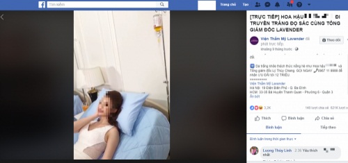 Khoảng 10 tháng trước, trên trang Fanpage chính thức của Viện thẩm mỹ Lavender có đăng tải Video ghi lại cảnh cơ sở này tiến hành truyền trắng cho Hoa hậu Đ.M.L..