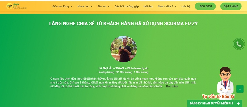 “Tôi bị đau dạ dày đã hơn 3 năm nay, tôi thường xuyên bị ợ hơi nóng và bị đau thượng vị khi đói, khi no. Tôi đã từng sử dụng nhiều phương pháp đông, tây y nhưng đều không hiệu quả.Thật may mắn, tôi được đồng nghiệp giới thiệu SCurmaFizzy, nơi đây có dược sĩ tư vấn nhiệt tình, bệnh dạ dày của tôi đã dần dần thuyên giảm sau một liệu trình"...