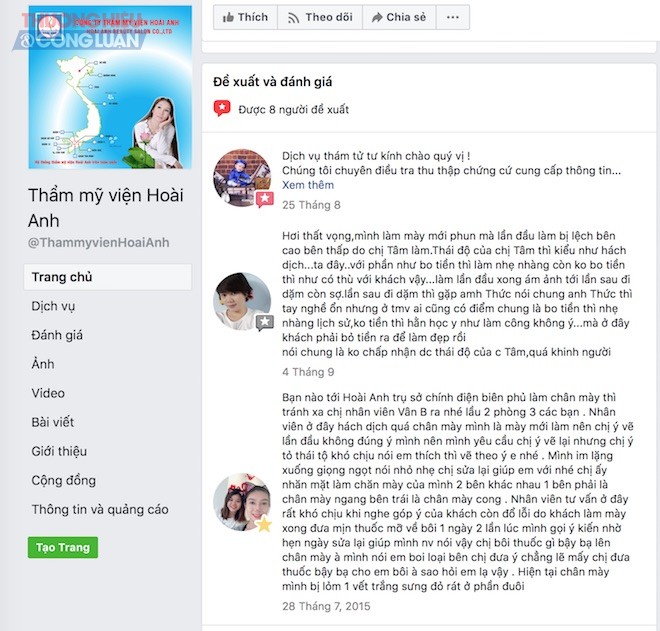 Trên thực tế, TMV Hoài Anh cũng bị nhiều khách hàng “tố” thực hiện dịch vụ kém chất lượng. Một khách hàng phàn nàn: “Hơi thất vọng, mình làm mày mới phun mà lần đầu làm bị lệch, bên cao bên thấp do chị Tâm làm. Thái độ của chị Tâm thì kiểu như hách dịch”. Khách hàng khác chia sẻ: “Mọi người làm phải tìm hiểu kĩ, em làm môi ở đây nhân viên không có trách nhiệm mà bị hỏng, giá thì đắt”. Một khách hàng nữa phản ánh: “Hoài Anh Nghệ An làm môi cho mình bị lem, màu thì không lên như quảng cáo. Mình nhẩm giá tiền cao gấp mấy lần so với nhiều thẩm mỹ viện khác mà chất lượng lại rất kém”.