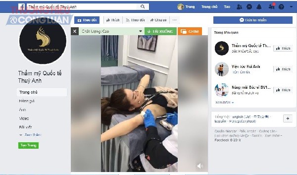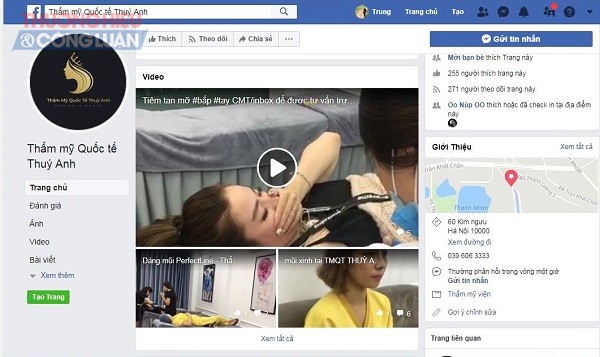 Một vài video quảng cáo trên trang Facebook “Thẩm mỹ Quốc tế Thúy Anh”