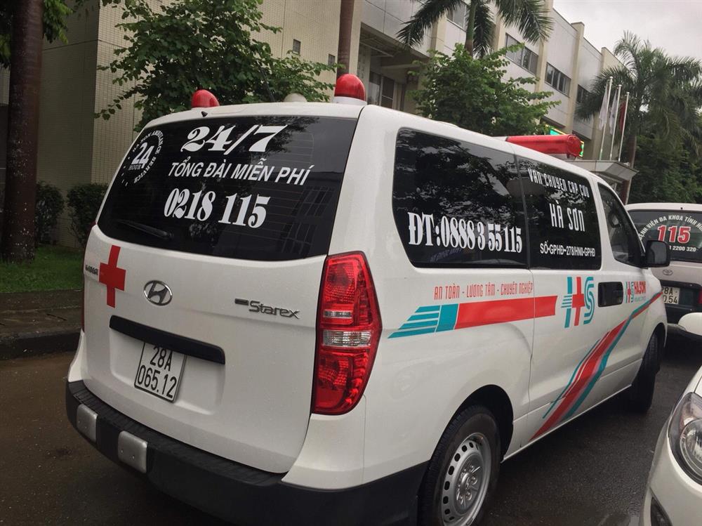 Ảnh bạn đọc cung cấp : Dàn xe dán logo của Vận chuyển cấp cứu Hà Sơn tại Bệnh viện Đa khoa Hòa Bình