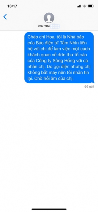 Do không nhận được phản hồi từ bà Hoa nên chúng tôi truyền tải thông tin theo đơn thư của ông Đồng Đức Khuê – Giấm đốc Công ty Sông Hồng