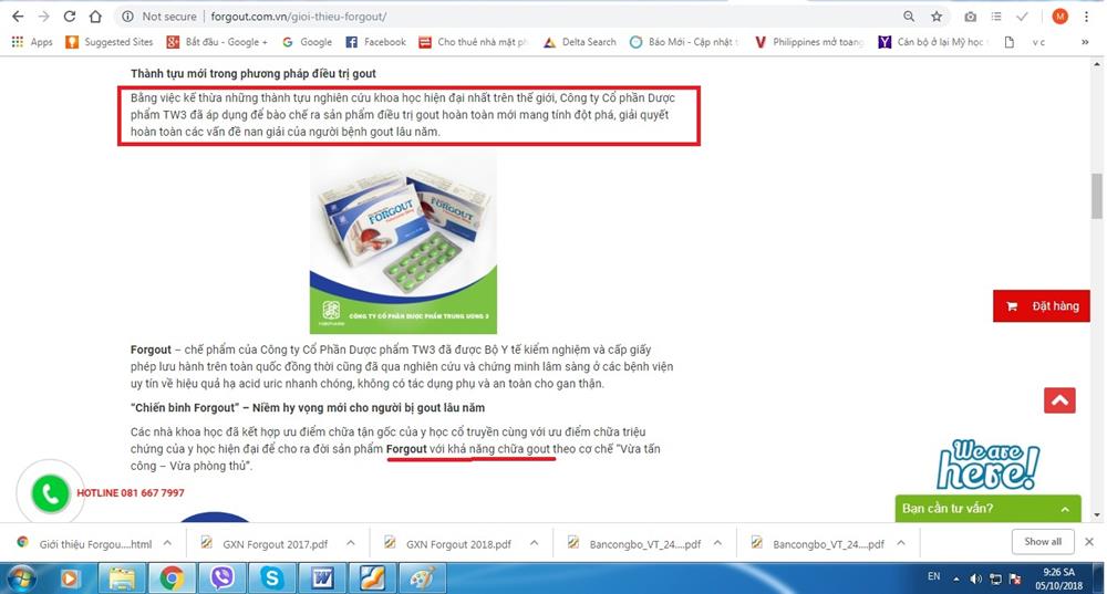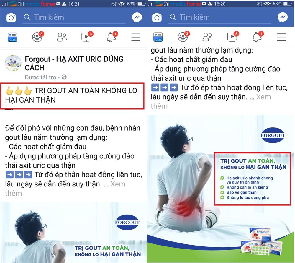 Thời gian gần đây, người dùng Facebook thường xuyên gặp các mẫu quảng cáo sản phẩm thực phẩm bảo vệ sức khỏe Forgout mà nội dung đã khiến người người tiêu dùng hiểu nhầm sản phẩm là thuốc chữa bệnh. Từ Facebook, người sử dụng điện thoại thông minh hoặc máy tính tiếp tục có thể truy cập trang web http://forgout.com.vn do Công ty Cổ phần Dược phẩm Việt Bách quản lý, vận hành. Trên trang web này, nhiều nội dung quảng cáo cũng khiến người tiêu dùng hiểu nhầm sản phẩm FORGOUT có thể giúp điều trị bệnh gout.