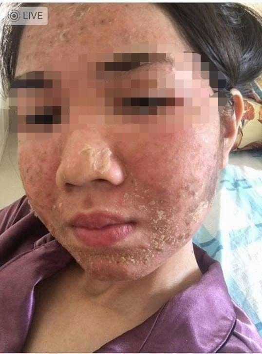 Theo đó da chị V không hề có cải thiện nào so với trước đó, tệ hơn nó còn xuất hiện dày đặc mụn, tàn nhang, trông rất thảm hại khiến chị bức xúc.