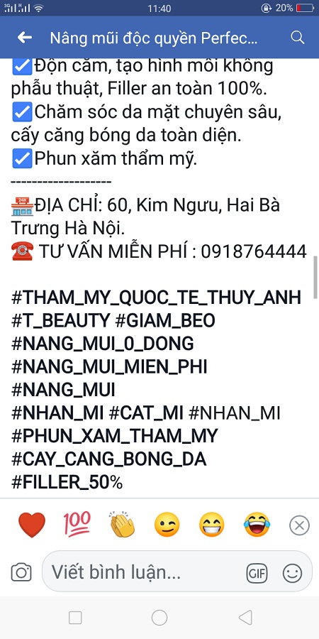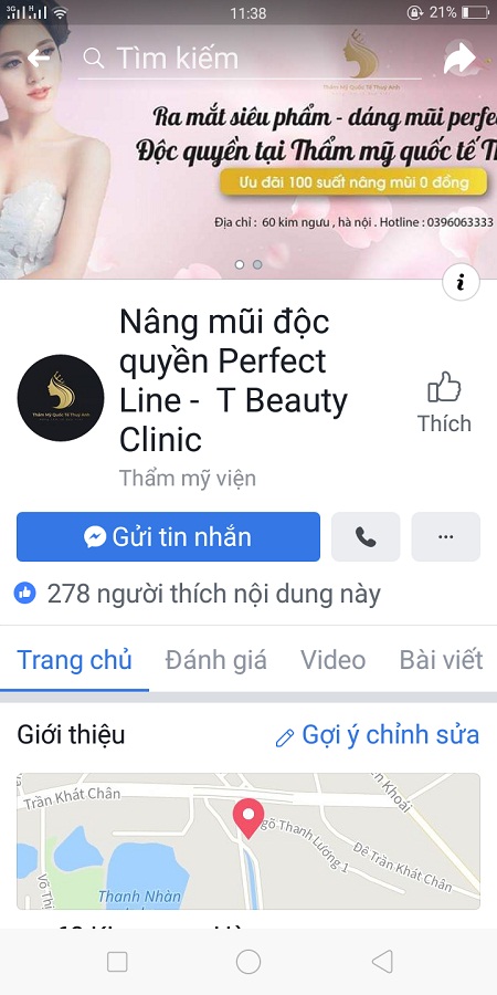 Thời gian vừa qua Hàng Hóa và thương hiệu HN nhận được nhiều phản ánh của khách hàng về việc Thẩm Mỹ Viện Thúy Anh (số 60, Kim Ngưu, phường Thanh Nhàn, quận Hai Bà Trưng) công khai thực hiện các dịch vụ như nâng mũi độc quyền Perfect line, sửa mũi lỗi, cải thiện mũi tiêm filler, bóc mỡ mí mắt, sụp mí, giảm béo an toàn, độn cằm, tạo hình môi không phẫu thuật, độn cằm…khi chưa đựơc cấp phép cũng như đội ngũ y bác sĩ không đảm bảo đầy đủ trình độ chuyên môn.