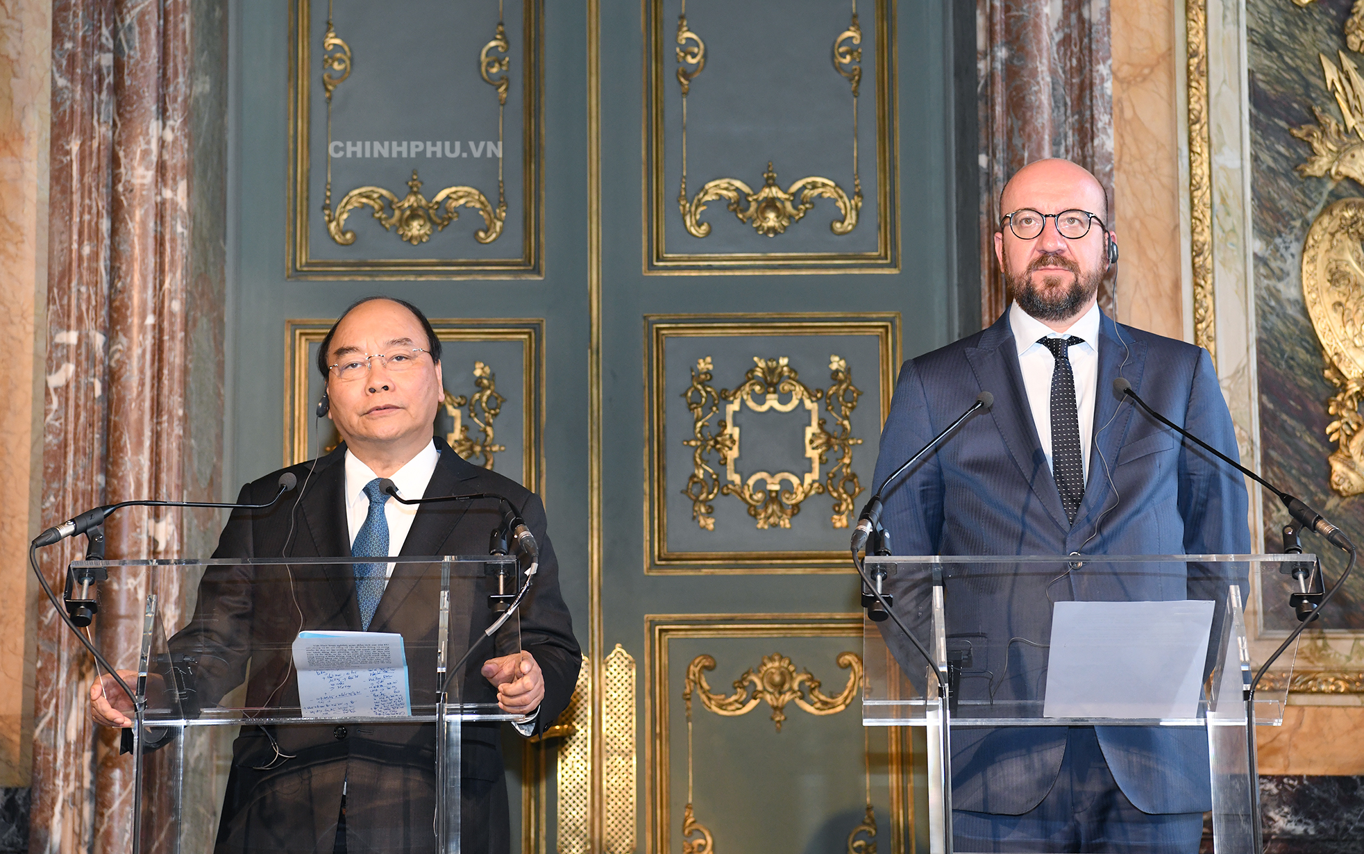 “Chúng tôi cũng đã thảo luận về hợp tác trên lĩnh vực hàn lâm, đào tạo giáo dục, trao đổi hợp tác trong lĩnh vực này, cũng như khuôn khổ thúc đẩy Hiệp định Thương mại Tự do Việt Nam- EU. Bỉ cam kết sẽ hỗ trợ Việt Nam trong lĩnh vực này”, Thủ tướng Bỉ cho biết.Thủ tướng Bỉ Charles Michel cho biết, hai Thủ tướng nhất trí cho rằng, đây là thời điểm quan trọng để hai nước thông qua các thỏa thuận hợp tác giữa hai chính phủ, doanh nghiệp hai nước. Hai bên đã thảo luận nhiều vấn đề quan trọng làm sao để thúc đẩy hợp tác kinh tế giữa Việt Nam và Vương quốc Bỉ, đặc biệt là thương mại và đầu tư lẫn nhau.