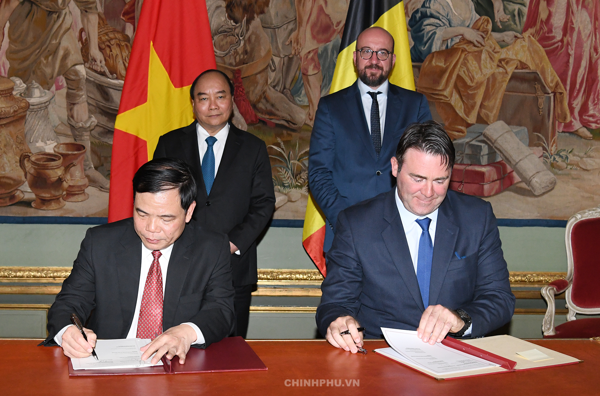 “Việt Nam đã có nhiều dự án đầu tư của Bỉ thành công. Việt Nam có môi trường đầu tư tốt để thúc đẩy các dự án của Bỉ làm ăn hiệu quả ở Việt Nam trong thời gian đến”, Thủ tướng nói. Phía Bỉ hỗ trợ thúc đẩy ký kết Hiệp định Thương mại Tự do giữa EU và Việt Nam. Đây là điều rất đáng hoan nghênh để tạo điều kiện phát triển thương mại đầu tư giữa hai nước.Thủ tướng Nguyễn Xuân Phúc cảm ơn sự đón tiếp nồng nhiệt, thân tình của Thủ tướng Bỉ dành cho Đoàn cấp cao Việt Nam. Thông báo về việc hai bên vừa ký kết 5 văn kiện hợp tác, Thủ tướng Nguyễn Xuân Phúc cho biết, hai bên đã trao đổi đến vấn đề hợp tác đào tạo đại học, trao đổi kinh nghiệm đào tạo nhân lực ở Việt Nam và khẳng định rằng, “hợp tác toàn diện, hiệu quả là mục tiêu rất quan trọng trong quan hệ giữa hai nước Bỉ - Việt Nam”. Bên cạnh đó, hai bên nhất trí thúc đẩy hợp tác trong lĩnh vực nông nghiệp, trong đó có vấn đề an toàn thực phẩm,