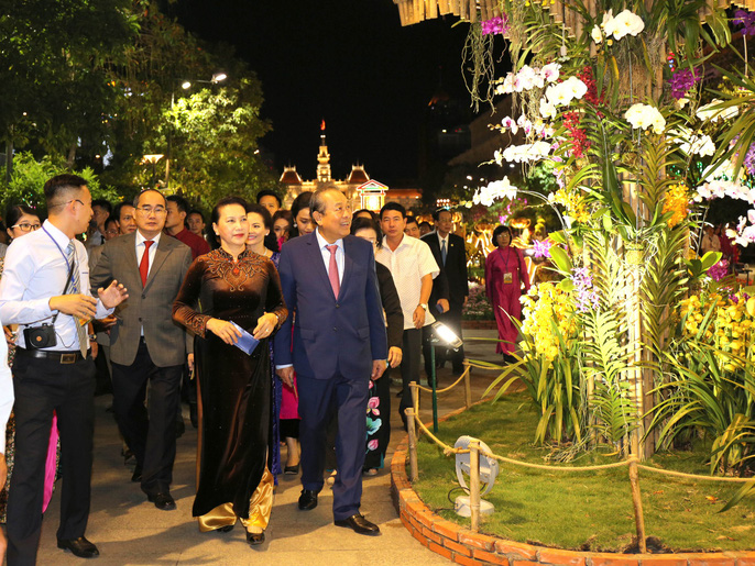 Đoàn lãnh đạo Trung ương và TP HCM cùng tham quan đường hoa Nguyễn Huệ trong đêm khai mạc