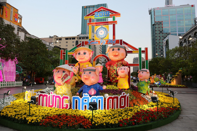 Gia đình heo ở đầu đường hoa Nguyễn Huệ 2019