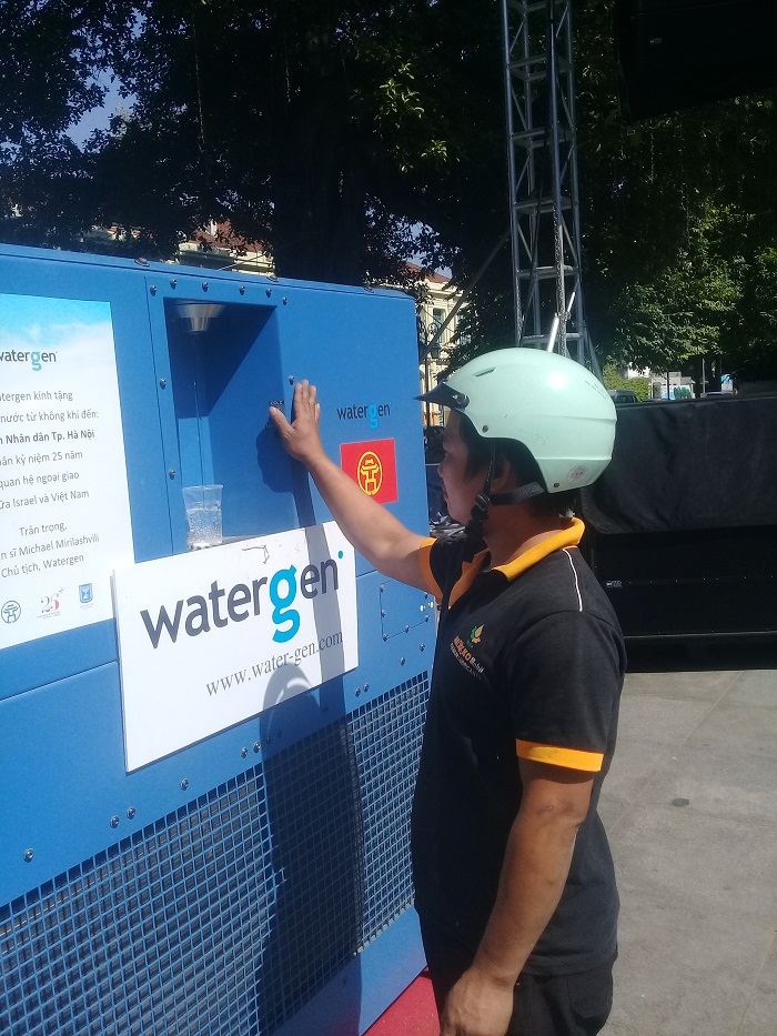 Nhân dịp kỉ niệm 25 năm thiết lập quan hệ ngoại giao Việt Nam - Israel, công ty Water gen của Israel đã tặng UBND TP Hà Nội hai chiếc máy lọc nước uống từ không khí. Đây là hai máy lọc nước từ không khí môi trường đầu tiên trên địa bàn thành phố.