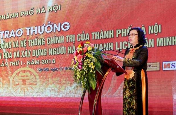 Phát biểu chỉ đạo tại lễ trao giải, Phó Bí thư Thường trực Thành ủy Hà Nội Ngô Thị Thanh Hằng nhấn mạnh, hai nhiệm vụ xây dựng Đảng và hệ thống chính trị và xây dựng người Hà Nội thanh lịch, văn minh có ý nghĩa quan trọng và sâu sắc, được thành phố Hà Nội đặc biệt quan tâm trong quá trình xây dựng, phát triển Thủ đô. Phó Bí thư Thường trực Thành ủy hoan nghênh và biểu dương các tác giả tham gia dự thi và có tác phẩm được trao thưởng hôm nay. Đó là kết tinh tâm huyết, trí tuệ, tình cảm của người làm báo với Thủ đô, với sự nghiệp xây dựng Đảng, phát triển văn hóa, xây dựng người Hà Nội thanh lịch, văn minh.