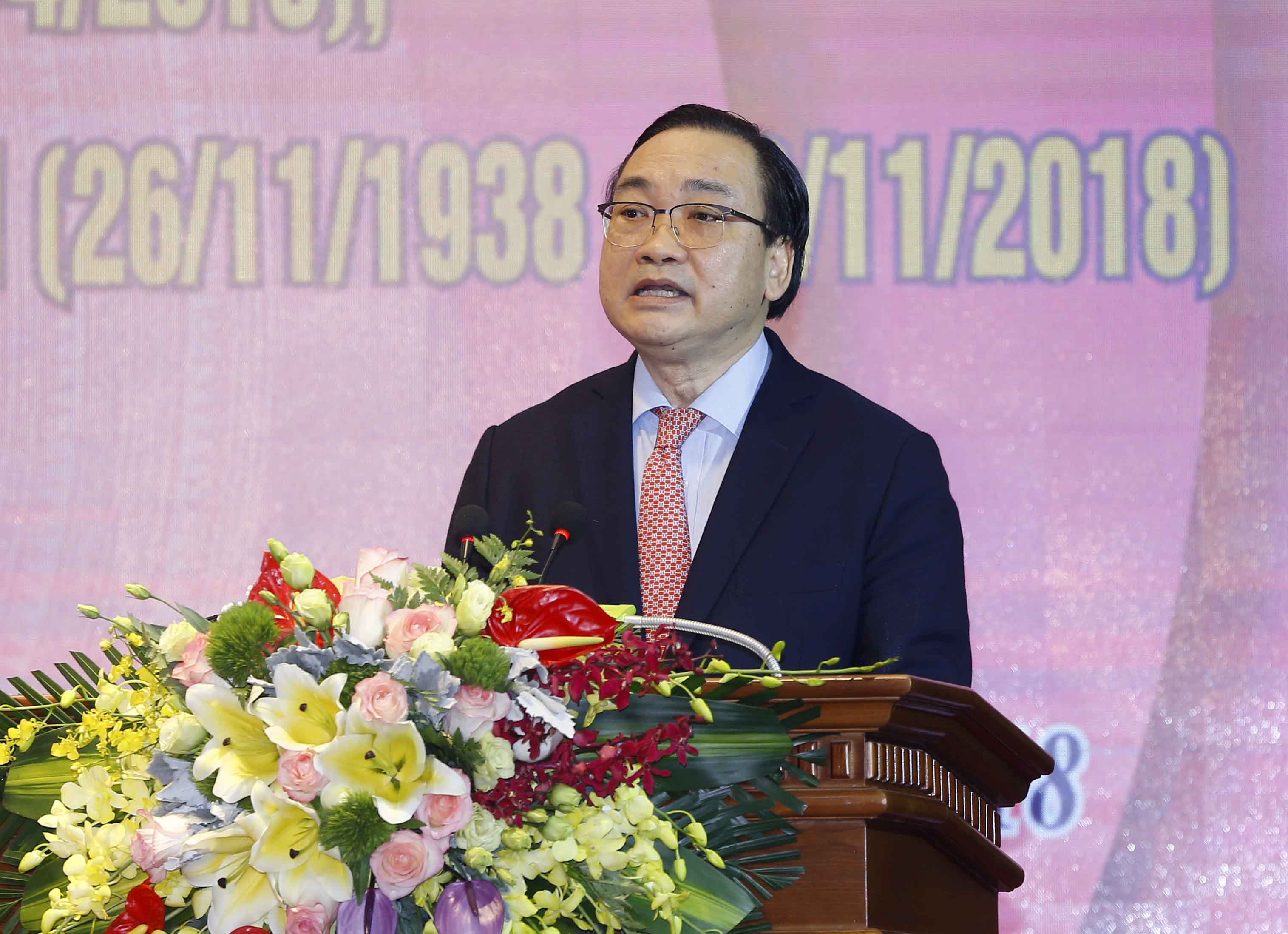 | Bí thư Thành ủy Hà Nội Hoàng Trung Hải phát biểu tại lễ kỷ niệm. - Ảnh: VGP/Lê Sơn |