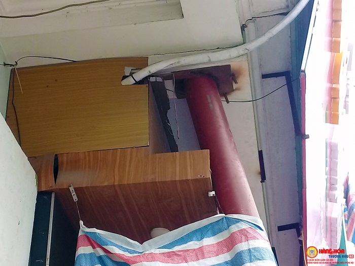 Phần đầu cột sắt được khoan gắn ốc vào ban công tầng 1 của các ngôi nhà.