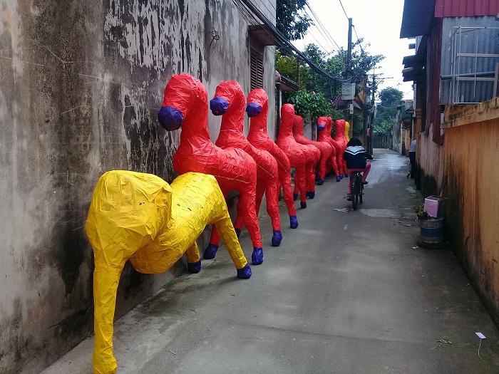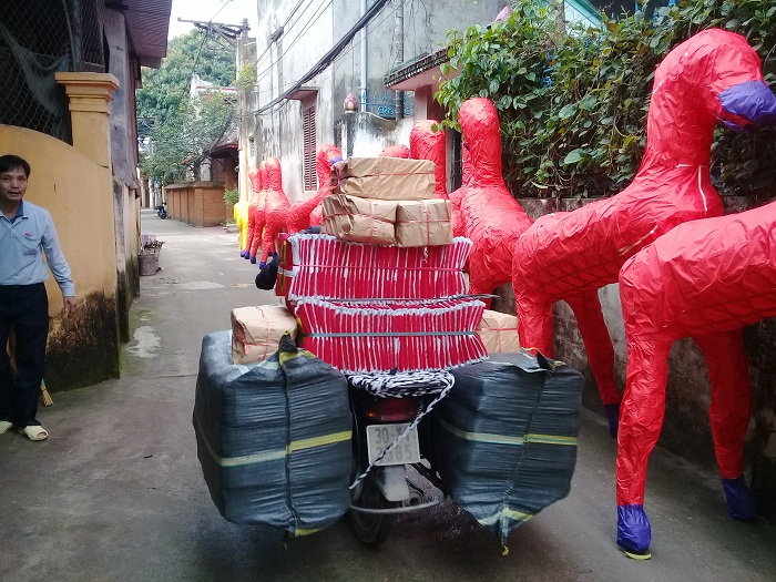 Mặc dù còn gần 2 tuần nữa mới đến Tết Nguyên đán 2019, thế nhưng không khí vội vàng của những hộ gia đình sản xuất vàng mã ở làng Văn Hội và Duyên Trường đều được thể hiện trong từng khuân mặt của mỗi thành viên trong gia đình. Vào thời điểm này, những con đường giữa làng của hai thôn nhìn đâu cũng thấy những món đồ hàng mã được để ở ngoài đường.
