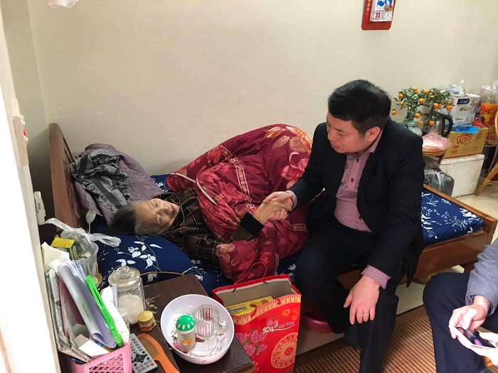 Ông Nguyễn Việt Trung - Chủ tịch phường Dịch Vọng đại diện cho Đảng ủy, HĐND- UBND- UBMTTQ phường đến thăm và tặng quà cho các gia đình chính sách, người có công...