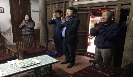 Đồng chí Nguyễn Việt Trung – Chủ tịch UBND phường và đồng chí Nguyễn Quý Hải – Phó chủ tịch UBND phường thắp hương gia đình Cụ Tạ Đình Tán - cơ sở cách mạng.