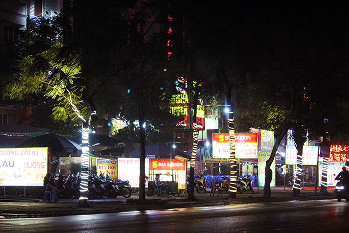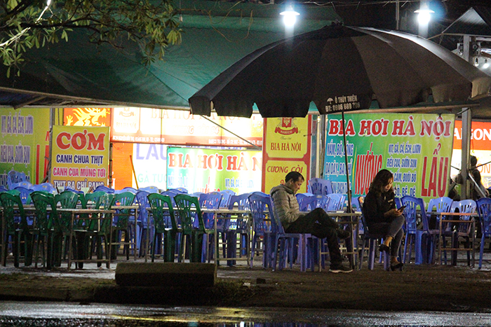“Trước đây, vào mỗi buổi tối, các dãy bàn của quán đều có khách ngồi ăn nhậu nhưng từ đầu tháng 1 đến nay luôn đìu hiu, thậm chí một số quán cả tối cũng chỉ được vài người vào ăn uống”. Chủ một nhà hàng trên đường Nguyễn Hữu Thọ vừa chỉ tay vừa nói.