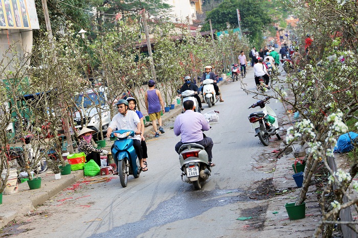 Những ngày tháng Giêng, chợ hoa Quảng Bá (quận Tây Hồ, TP. Hà Nội) bị “độc chiếm” bởi hàng trăm mét đường bán hoa lê rừng.