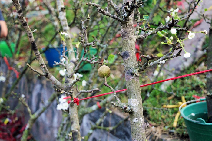 Không chỉ có hoa, những mầm lộc và quả cũng có ở trên các cành lê rừng.